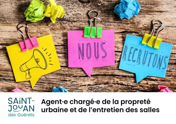 La commune de Saint-Jouan des Guérets cherche pour un remplacement d’un mois (possible renouvellement) un·e agent·e à temps complet chargé·e de la propreté urba...