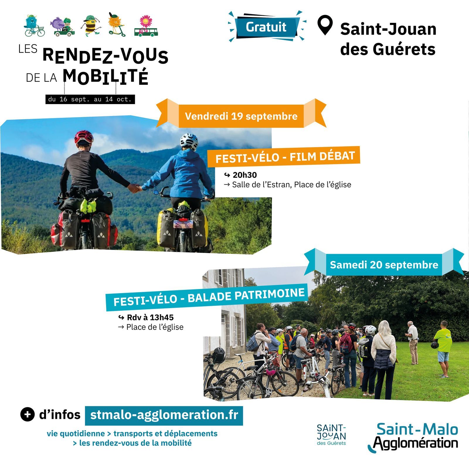 En partenariat avec Saint-Malo Agglomération, le comité consultatif sur les mobilités à Saint-Jouan des Guérets inaugure le Festi-vélo. Deux temps forts sont prévus :
