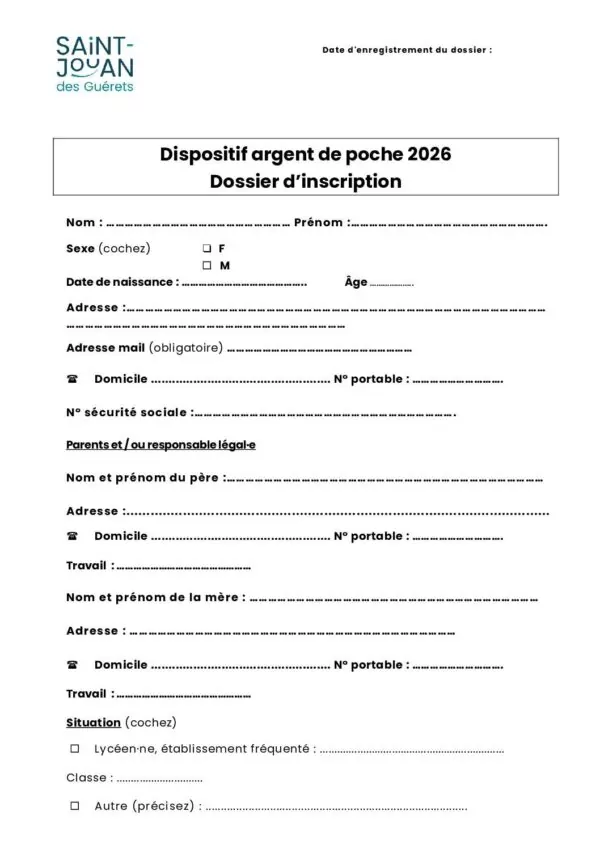 - Pour qui ? Les filles et les garçons de 16 et 17 ans, domiciliés à Saint-Jouan des Guérets.