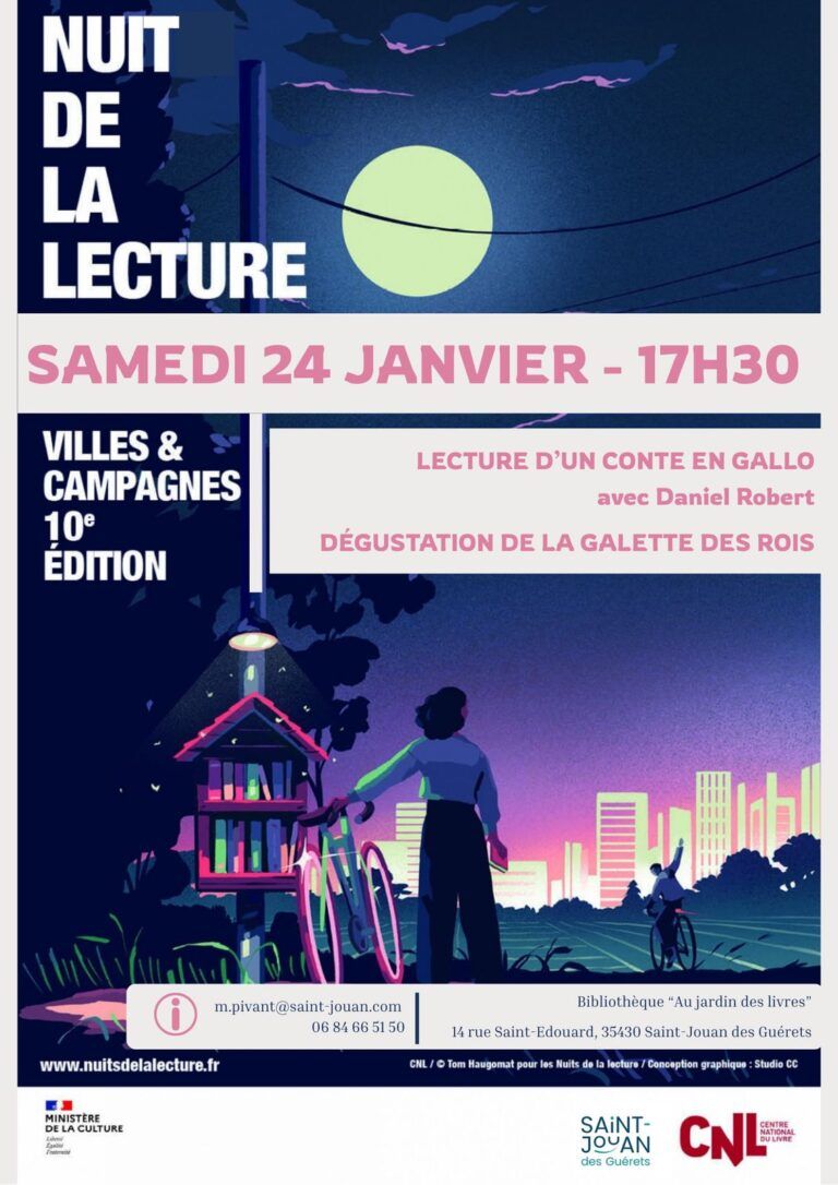 Dans le cadre de l’événement « Les Nuits de la Lecture », le 𝐬𝐚𝐦𝐞𝐝𝐢 𝟐4 𝐣𝐚𝐧𝐯𝐢𝐞𝐫, la bibliothèque de Saint-Jouan vous donne l'occasion de découvrir ou re-découvrir le gallo, ses expressions et ses sonorités avec le conteur Daniel ROBERT.