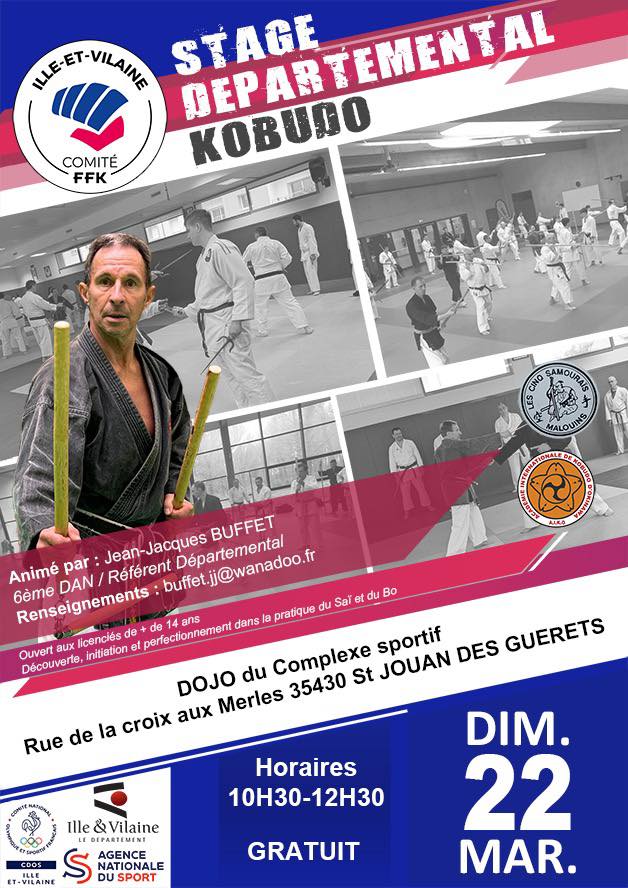 Jean Jacques Buffet, 6è DAN, référent technique départemental, animera ce stage d’initiation ou de perfectionnement à la pratique du Saï et du Bo. L’occasion parfaite de découvrir ou de redécouvrir cette discipline.