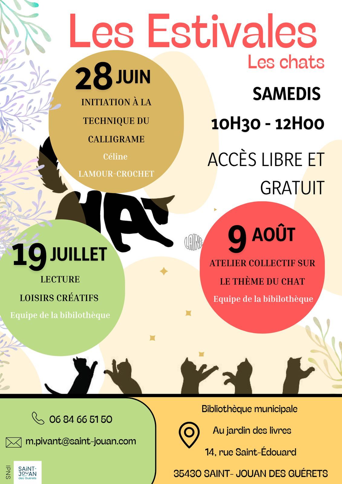 - samedi 9 août : atelier collectif sur le thème du chat, proposé par l'équipe d'animation de la bibliothèque.