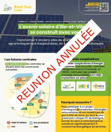 Initialement programmée jeudi 9 octobre à 18h30 à la salle socioculturelle, la réunion d'information consacrée au projet BretiSun* est annulée, le montant maximum recherché pour la…